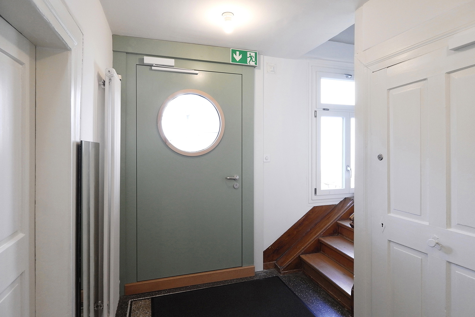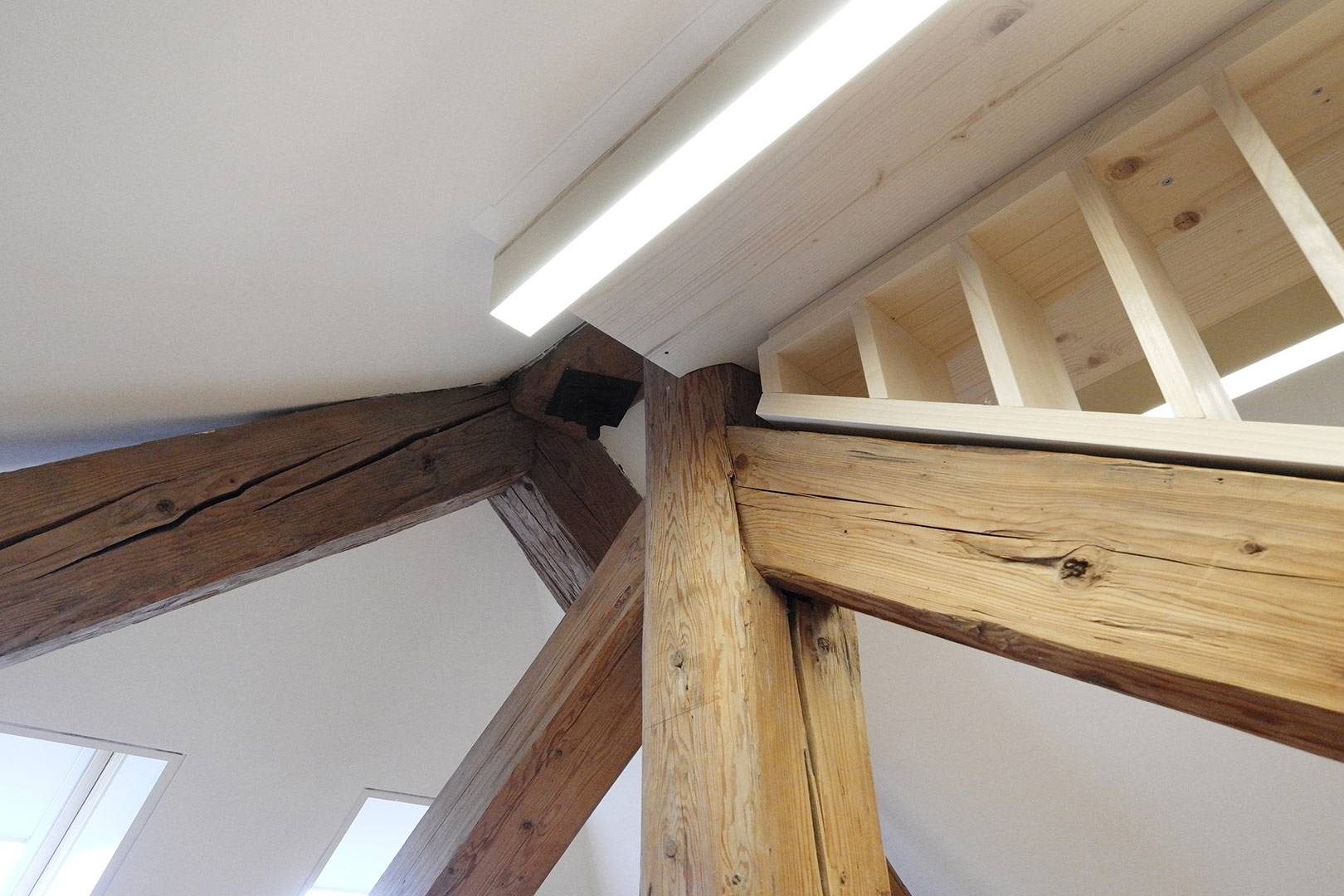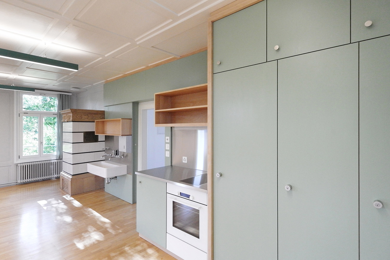 Das 2005 in eine Wohnung umgebaute Ober-und Dachgeschoss wurde durch einen sorgfältigen Umbau mit minimalen architektonischen Eingriffen in einen Kindergarten umgestaltet.